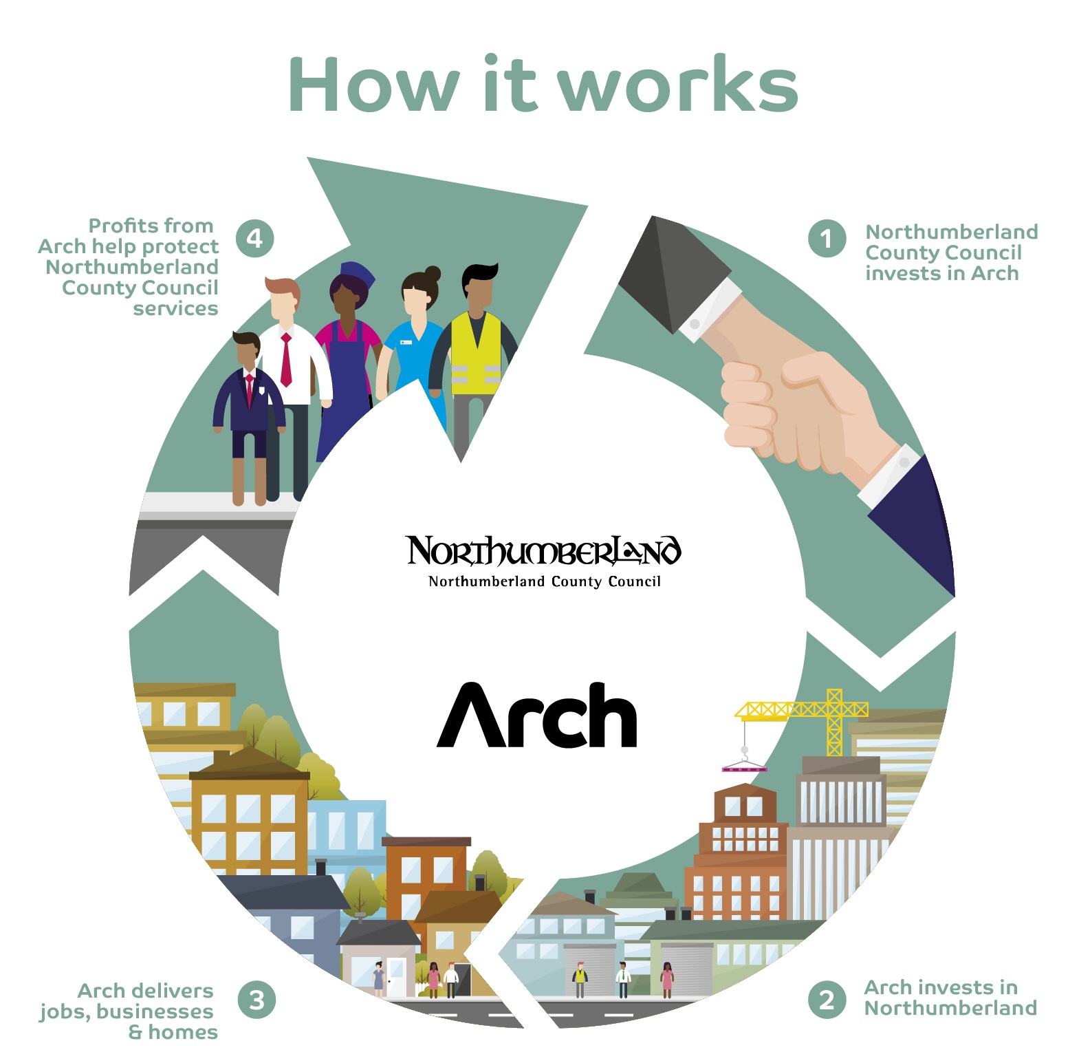 Arch operates as an investment and asset-based business with a £280m portfolio of commercial and residential property, the profits from commercial activities are reinvested to support economic and social development across Northumberland.